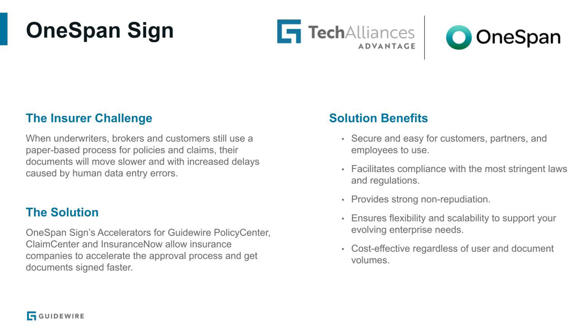 Our eSignature solution, OneSpan Sign, supports the Guidewire suite of...