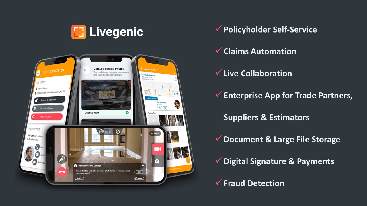Livegenic offers a suite of solutions—including policyholder self-service, virtual collaboration, digital signature, file storage and on-site professional inspections. Insurers leverage Livegenic to enhance claims processing, underwriting,...