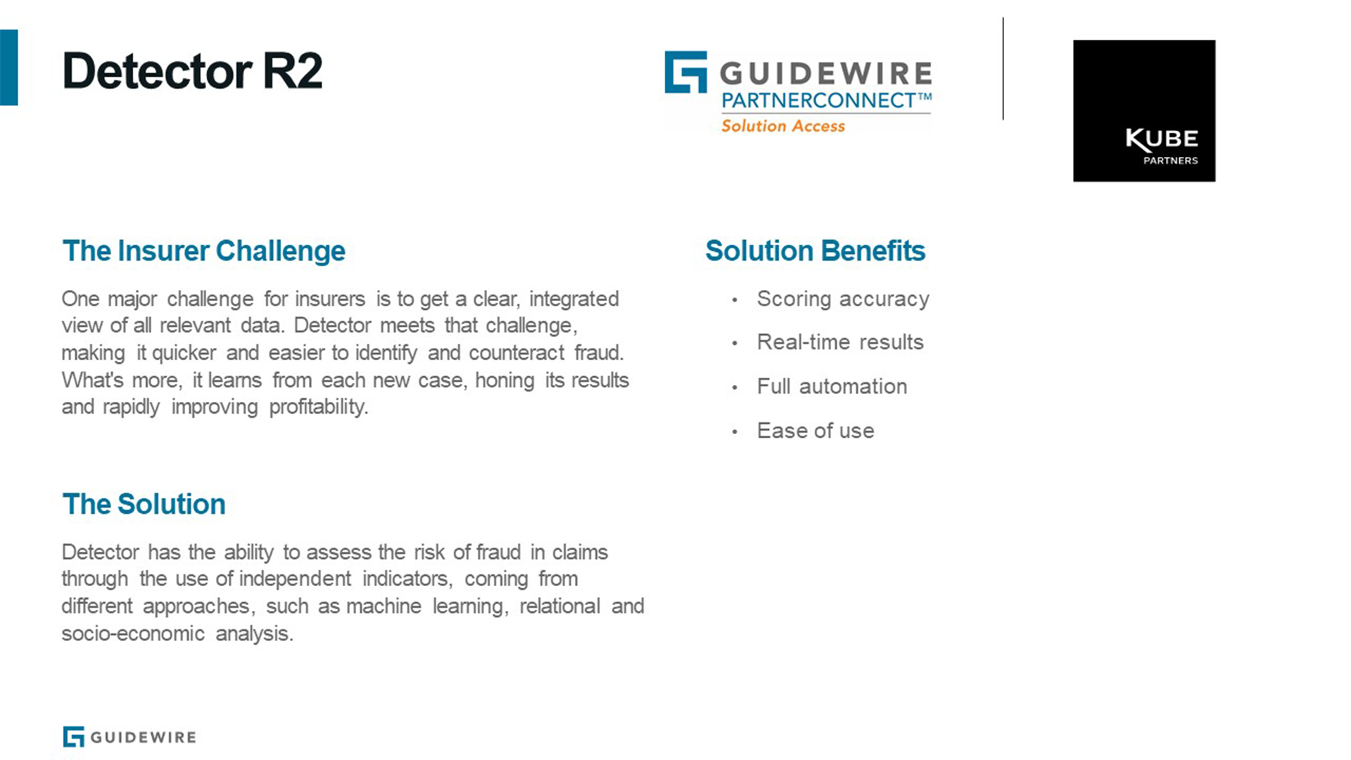 Kube Partners is proud to partner with Guidewire and to introduce Detector, a web-based end-to-end solution that provides 360° detection on claims, underwriting, and internal...