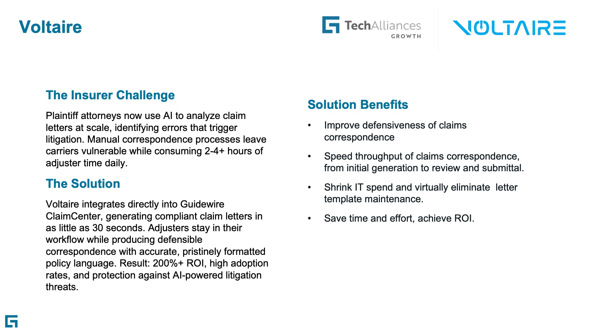 Voltaire is a specialized AI claims correspondence generation and compliance tool for property and casualty (P&C) insurers. P&C carriers face an unprecedented challenge: the emergence of sophisticated plaintiff-side AI tools that analyze claim letters at scale for inconsistencies, errors, and litigation opportunities. As carriers navigate this new defensive landscape, Voltaire serves as the essential countermeasure—an AI-powered solution that drafts bulletproof...