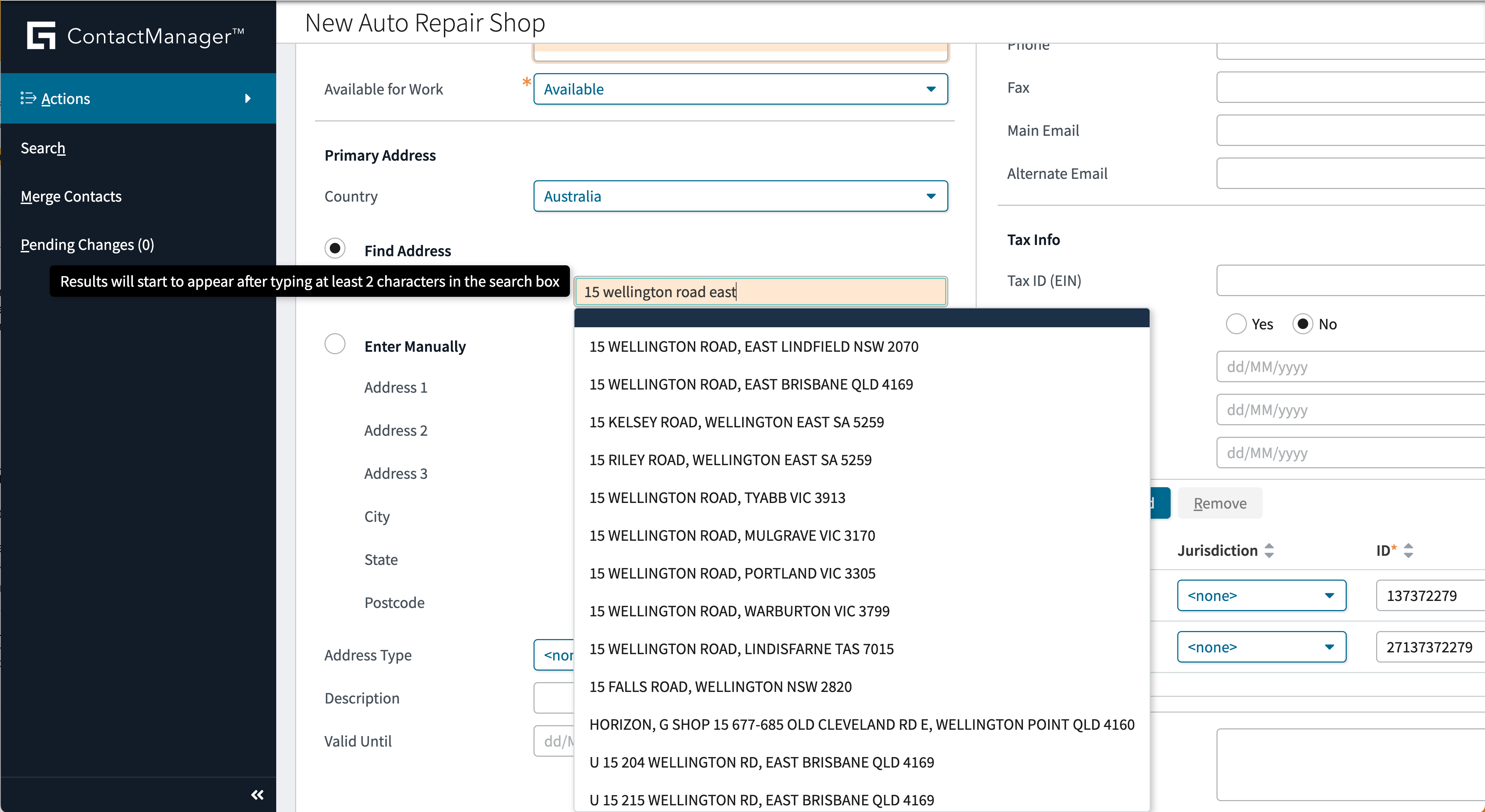 Australia Address Lookup (ContactManager)