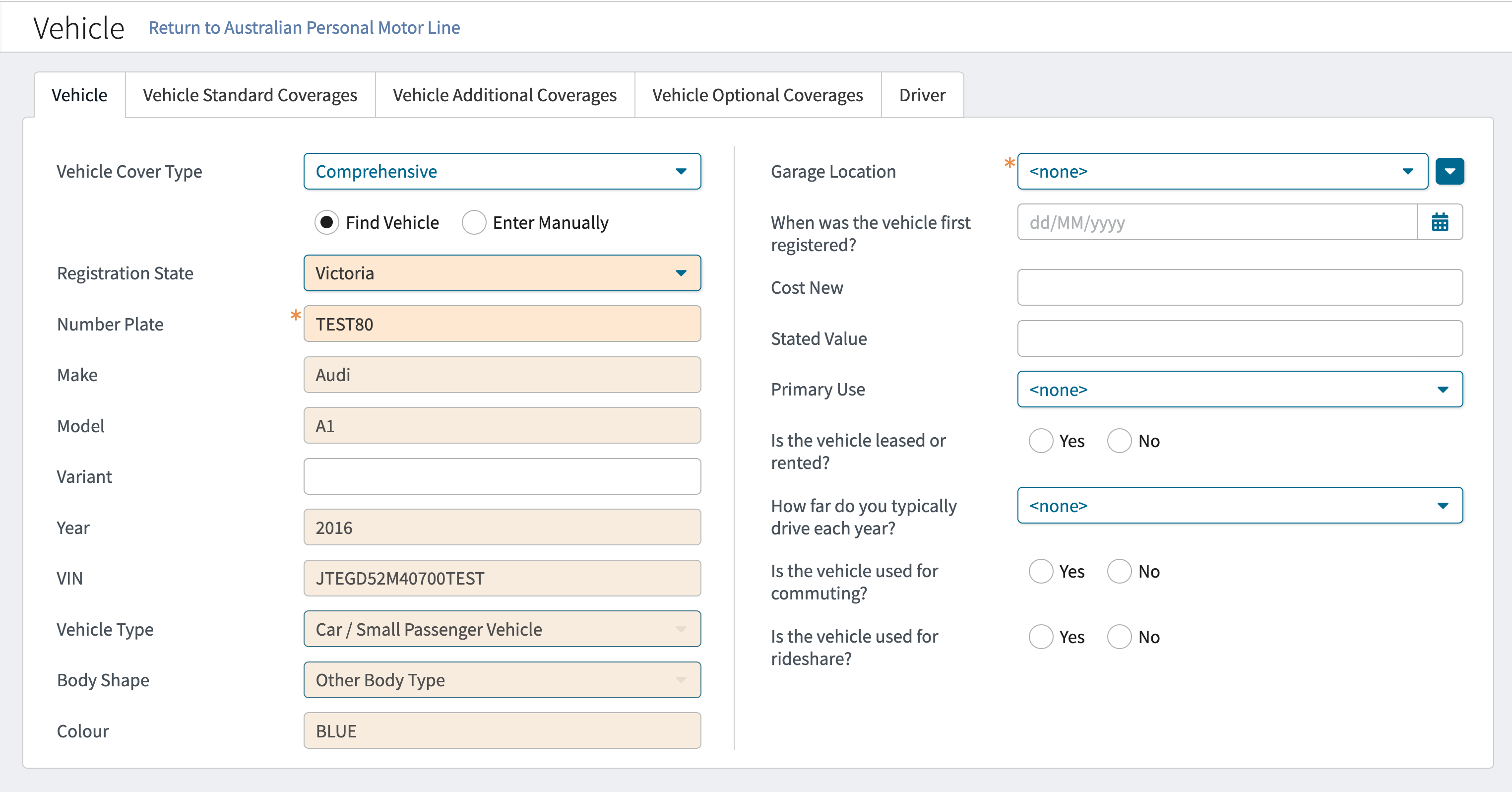 Australia Vehicle Lookup (PolicyCenter)