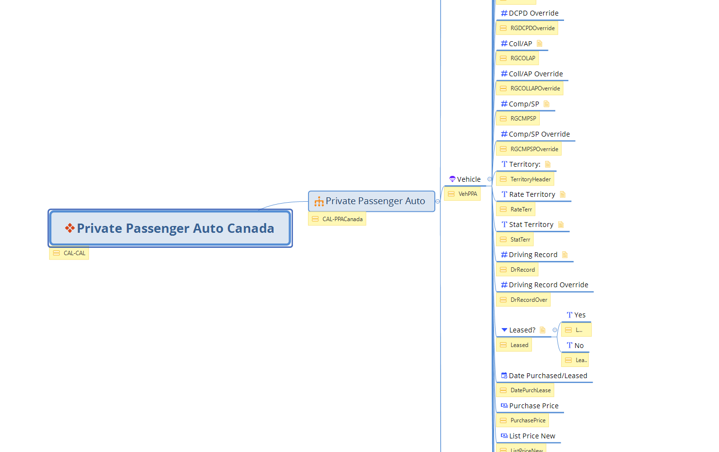 Advanced Product Designer mindmap and xml template. This can be used to start using a Canada Private Passenger Automobile product.