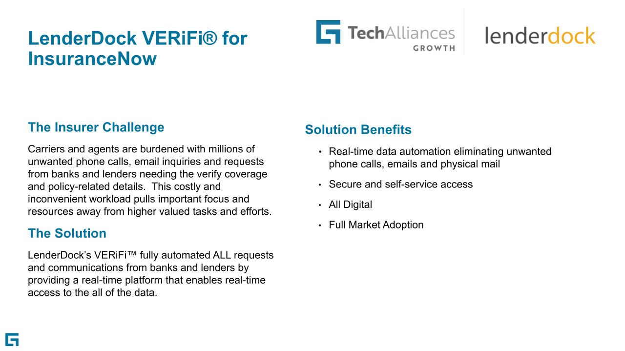 VERiFi® fully automates and streamlines the policy verification workflow between the insurer and mortgagees in real-time. LenderDock calls InsuranceNow APIs and captures and shares a comprehensive data with the verifier, mortgage servicer or bank.