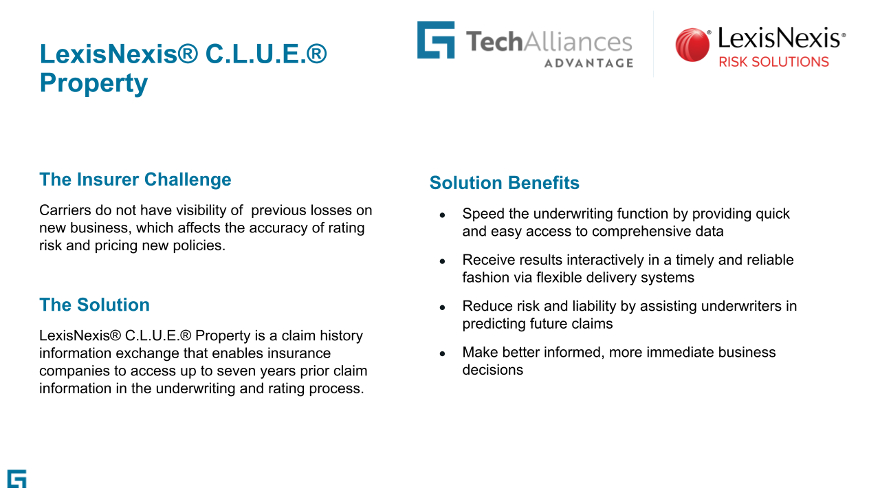LexisNexis® C.L.U.E.® Property is a claims history information exchange with up to seven years of property claims, now built with Integration Frameworks for Guidewire Cloud.