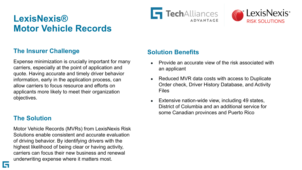 LexisNexis® Risk Solutions provides MVRs from 49 states, District of Columbia, Puerto Rico & the CA province of New Brunswick, now built with Integration Frameworks for Guidewire Cloud.