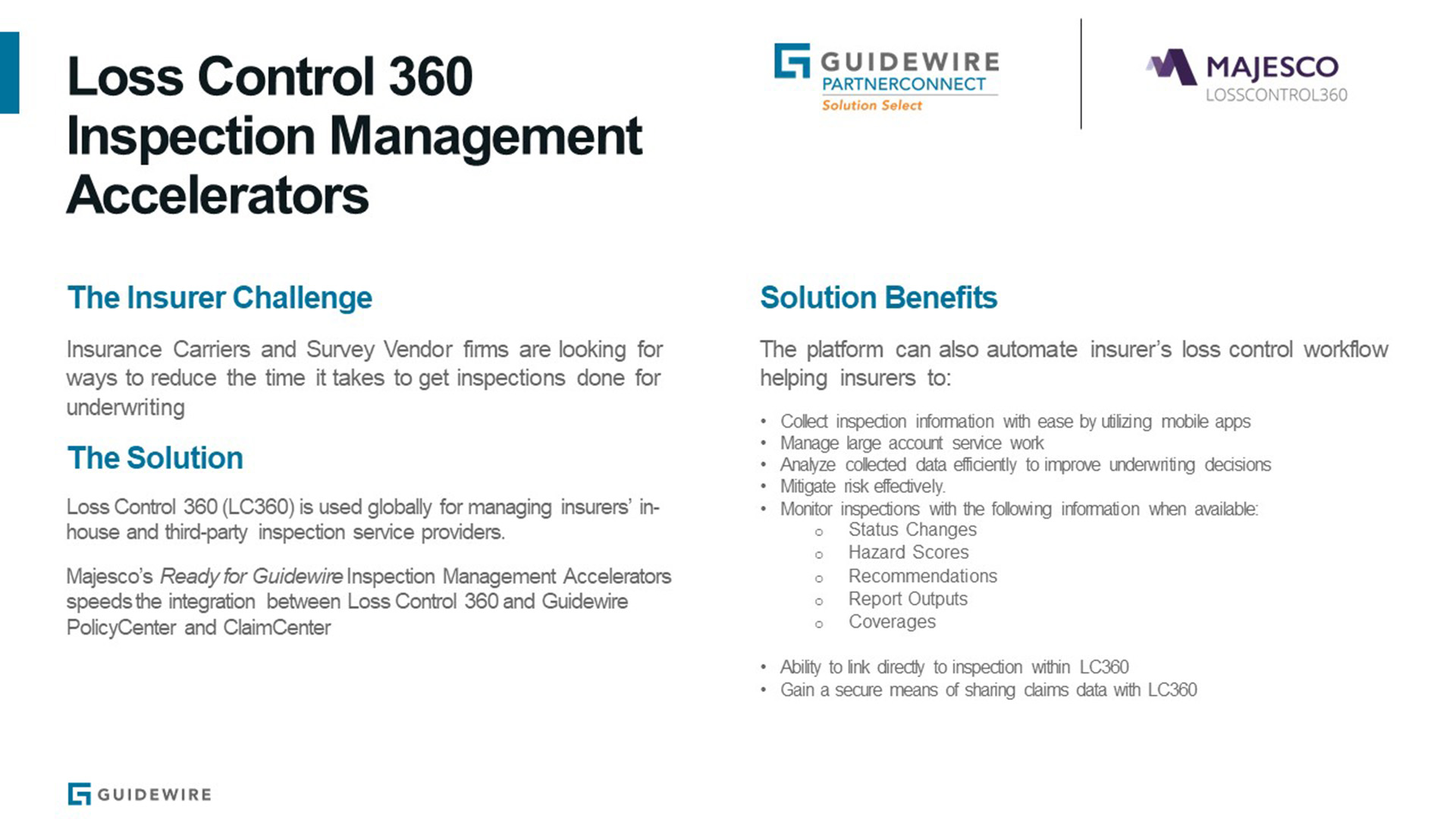 Majesco LossControl Accelerator for Inspection Management for PolicyCenter 10