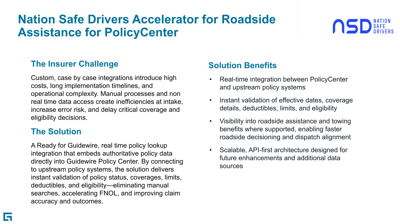 Nation Safe Drivers Accelerator for Roadside Assistance for PolicyCenter