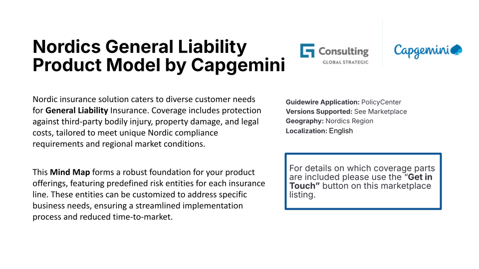 General Liability, built with compliance and customization for the Nordics region, now integrated with Frameworks for Guidewire Cloud.
