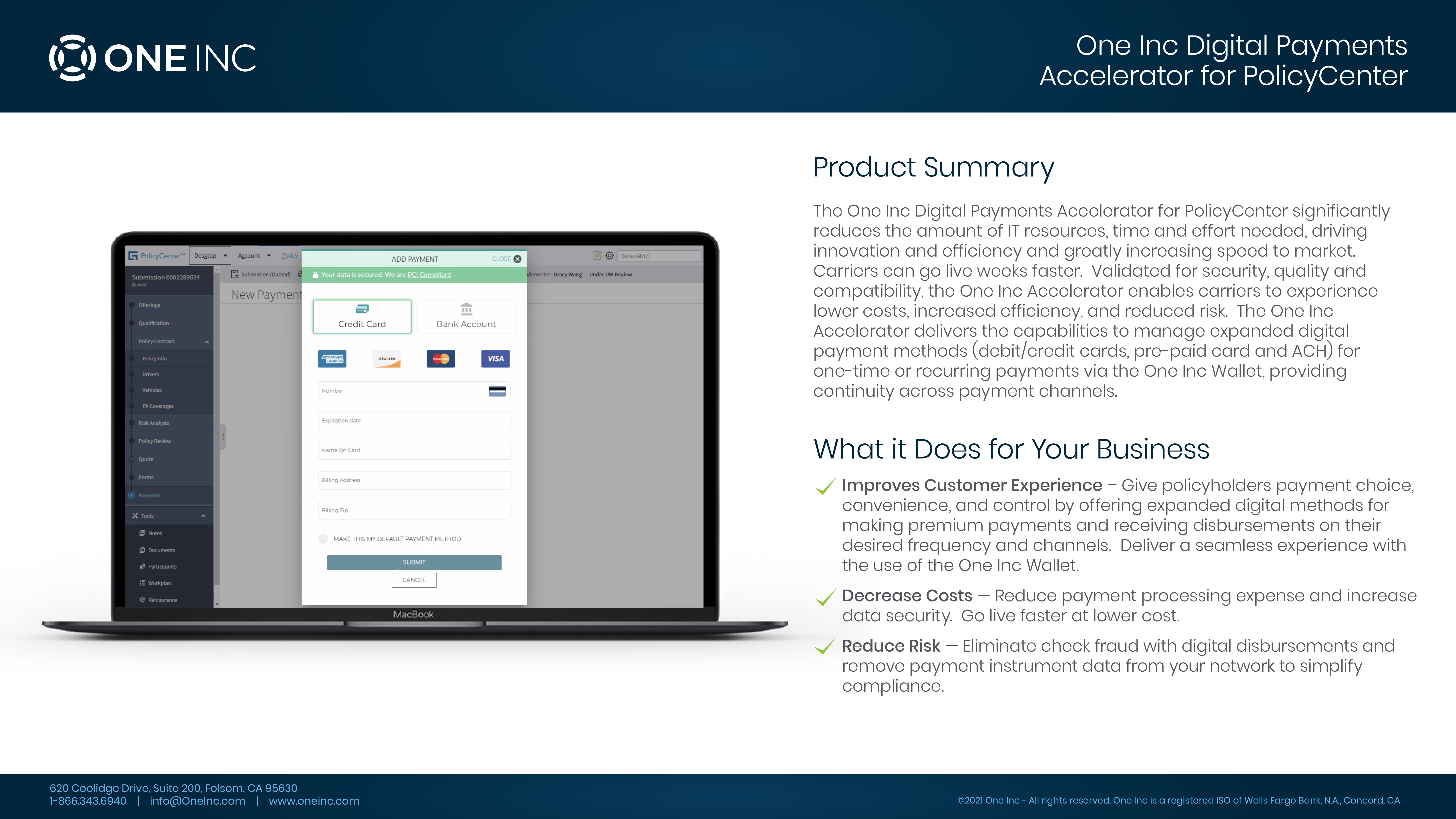 One Inc Digital Payments Accelerator for PolicyCenter 10