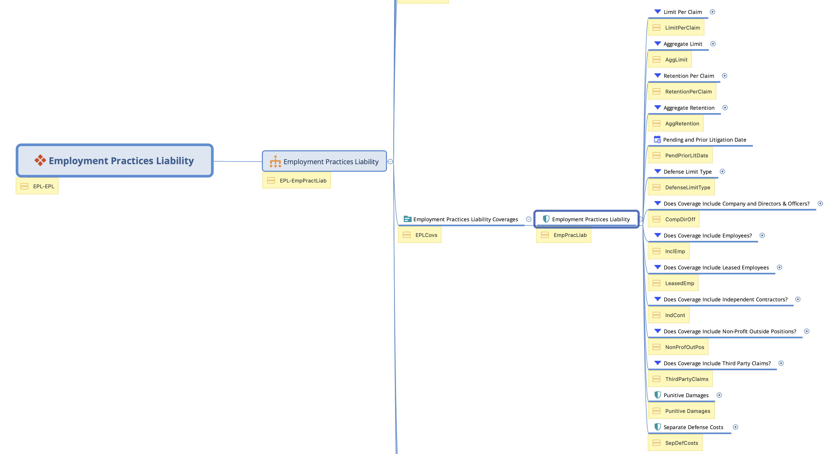 Advanced Product Designer mindmap and xml template. This can be used to start a USA Employment Practices Liability product.