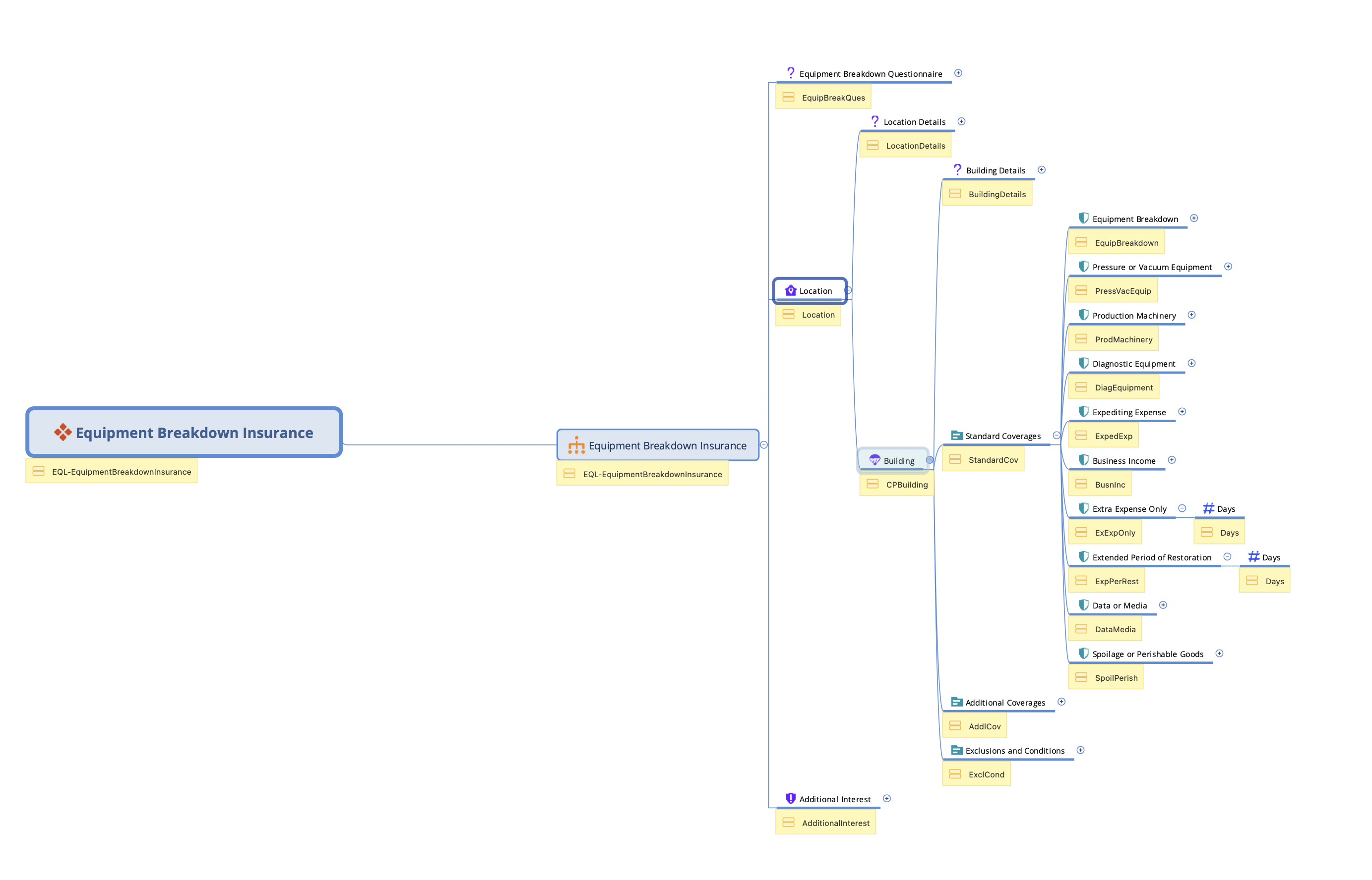 Advanced Product Designer mindmap and xml template. This can be used to start using a USA Equipment Breakdown product.