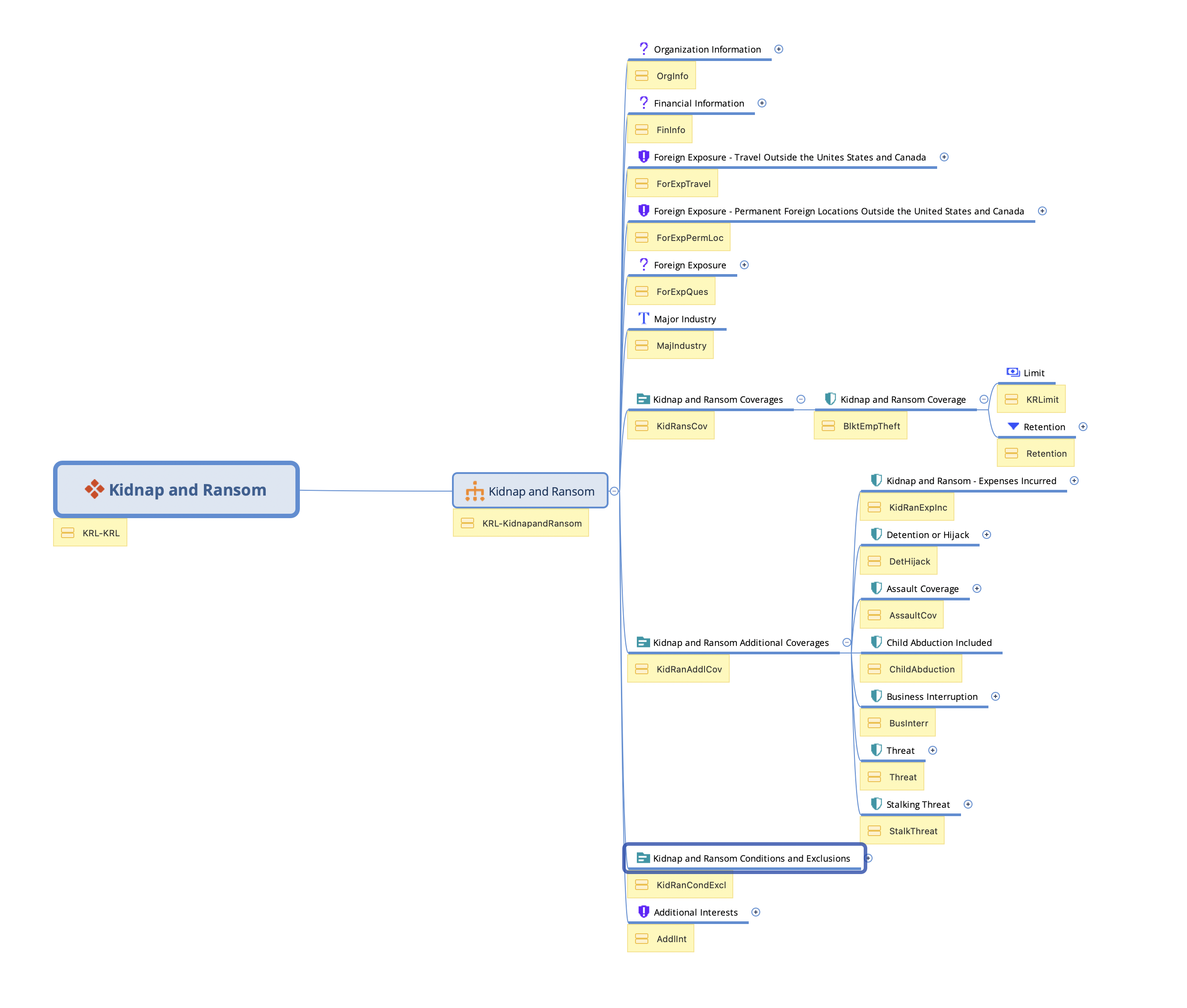 Advanced Product Designer mindmap and xml template. This can be used to start a USA Kidnap and Ransom product.