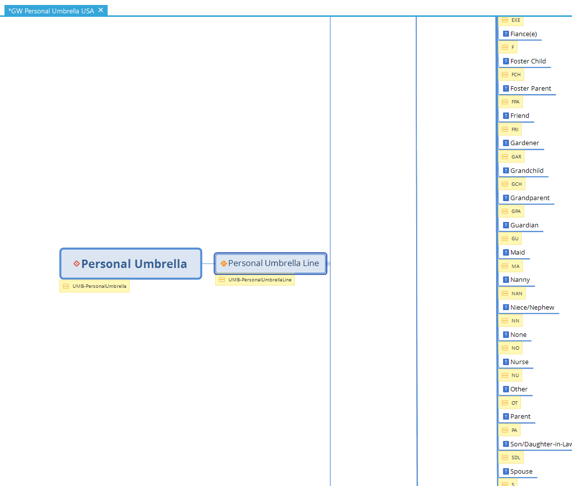 Advanced Product Designer mindmap and xml template. This can be used to start using a USA Personal Umbrella.