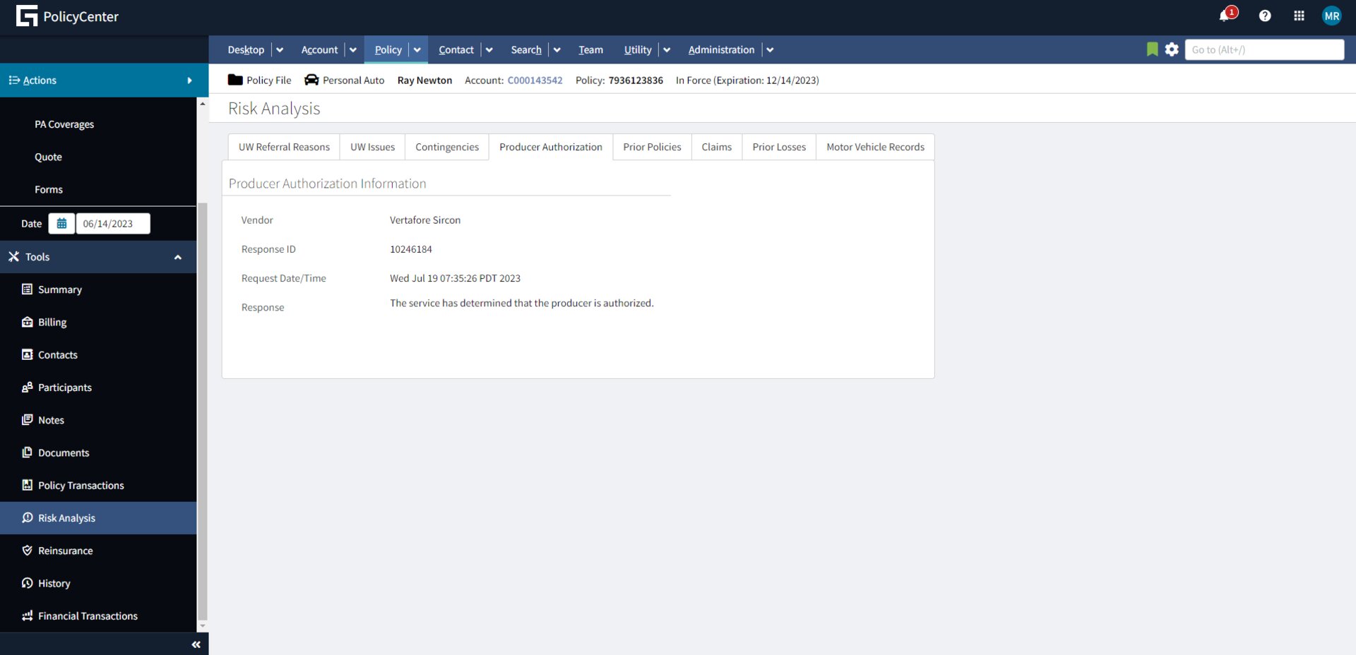 Vertafore Sircon for Carriers Integration - PolicyCenter